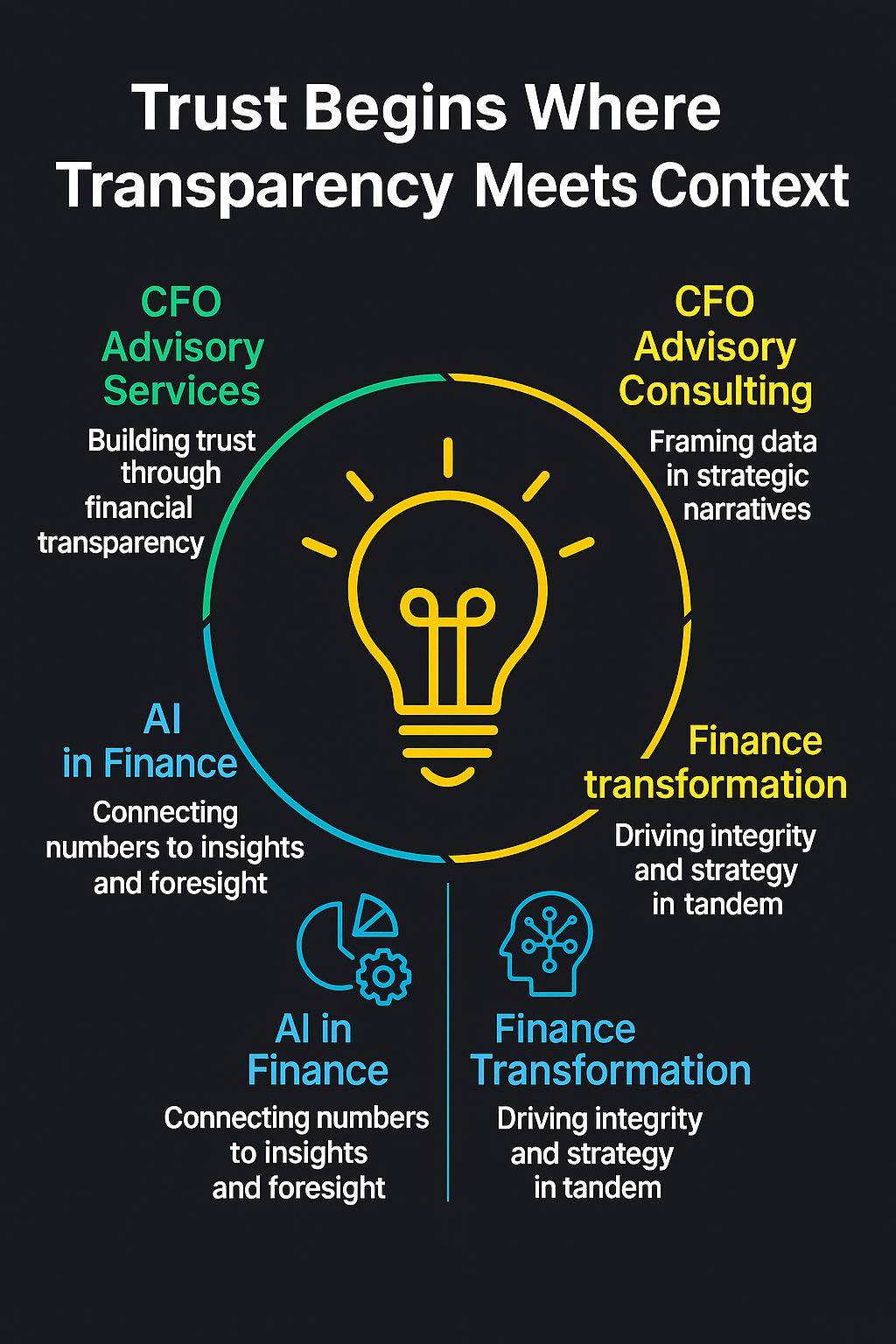 I did not begin my journey in finance to become a mere steward of compliance. Like many in this field, I started with spreadsheets and statements, GAAP checklists and audit cycles. Over time, however, it became uncomfortably clear that the most profound questions coming from the boardroom had nothing to do with technical accounting. They were concerned about clarity. They demanded a narrative. They asked not just “What happened?” but “Why did it happen?” and “What does it mean for our future?” This is where CFO advisory services step in, moving beyond traditional reporting into strategic storytelling. Through CFO advisory, CFO advisory consulting, and the integration of AI in finance, the role of the finance leader expands from compliance guardian to forward-looking strategist driving financial transparency, CFO drive, and CFO strategies while leveraging expertise in finance transformation strategy consulting and financial transformation services.