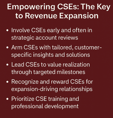 As our company matured in its understanding of post-sale motion, it became increasingly obvious that the work of expansion could not begin at renewal. That would be too late. Customers rarely made buying decisions on the eve of contract expiration. They made them gradually, based on lived experience and on the responsiveness of support, the clarity of onboarding, the alignment of product to promise. And in every one of these interactions, the CSE played a defining role. Which led us to a question that reshaped our operating model: what if we treated CSEs not as protectors of revenue, but as early contributors to it?
