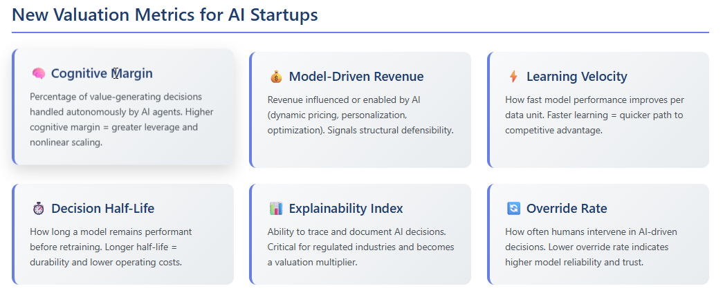 To value AI startups well, I now use metrics that reflect the intelligence economy and model maturity. Here are metrics I use in internal valuation and investor conversations: